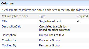 3. Immediately after creating the “DescriptionCalc” calculated column (while still in the “List Settings” page), delete the “Description” column.